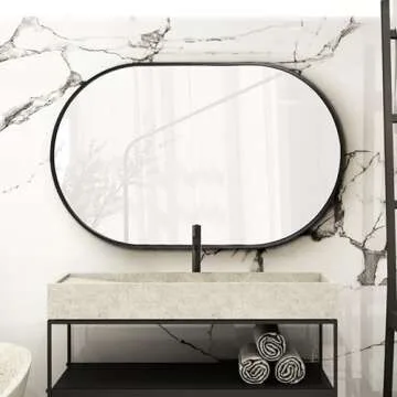 HOWOFURN Oval Wall Mirror, 24x36 Oval Black Bathroom Mirrors, Wall Mounted Mirror, Oval Vanity Mirror Metal Frame, Vertical & Horizontal Hang, Ideal for Bathroom, Bedroom, Living Room, Entryway