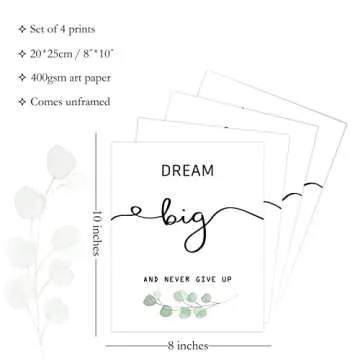 Howwii Inspirational Wall Art Office Decor, Motivational UNFRAMED Wall Art Prints for Bedroom,Living Room,Office,Classroom, Set of 4, 8"x10"