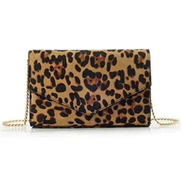 HOXIS Leopard Print Envelope Evening Clutch Women Chain Shoulder Bag (Brown Leopard Print)