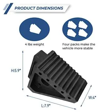 Show more Introducing the UPGRADED HEAVY DUTY RUBBER WHEEL CHOCKS by HOXWELL, the ultimate solution for secure vehicle parking. Designed with premium rubber and nylon-enhanced technology, these wheel chocks are built to last, offering twice the strength of ordinary rubber alternatives. Say goodbye to slipping or crushing; these chocks provide unparalleled reliability on any surface. Additionally, the triangular design and ribbed texture at the bottom enhance grip, ensuring your vehicle stays firmly in place without the need for cumbersome tools—just a simple step to set them up.