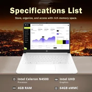 HP 14" HD Student Laptop - Intel Celeron, 4GB RAM, 64GB eMMC, Lightweight & Fast