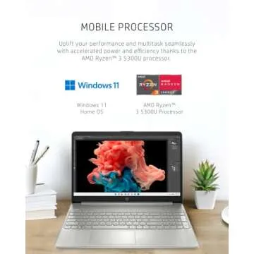 HP 15 Laptop, AMD Ryzen 3-5300U Processor, 8 GB RAM, 256 GB SSD Storage, 15.6-inch HD Micro-Edge Display, Windows 11 Home, Long-Lasting Battery, Fast Charge, 720p Webcam (15-ef2024nr), Natural silver