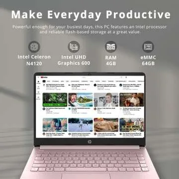 HP 2021 Stream 14" HD SVA Laptop Computer, Intel Celeron N4000 Processor, 4GB RAM, 64GB eMMC Flash Memory, Webcam, 1-Year Office, Intel UHD Graphics 600, Win 10S, Rose Pink, 32GB SnowBell USB Card