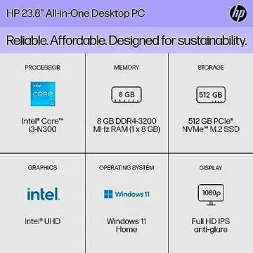 Imagine enjoying your favorite shows and movies on a stunningly clear display, or effortlessly handling multiple applications and tasks with ease. The HP 23.8 inch All-in-One Desktop PC not only enhances your productivity but also brings joy to your creative pursuits. With its sleek design and powerful capabilities, this device is not just a tool; it’s a companion for life’s adventures, making every day easier and more enjoyable. You'll feel empowered by its performance, and reassured knowing it’s good for the planet!