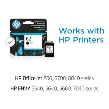 Show more Experience unmatched quality with the Original HP Toner, crafted by America's most trusted brand in printing solutions. This HP 62 Black Ink Cartridge is designed specifically for a range of HP printers including the ENVY 5540 series, OfficeJet 5740, and many more, ensuring seamless compatibility and optimal performance. With a yield of approximately 200 pages, you'll enjoy reliable printing without frequent interruptions.
