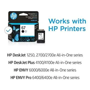 HP 67 Black Ink Cartridge | Works with HP DeskJet 1255, 2700, 4100 Series, HP ENVY 6000, 6400 Series | Eligible for Instant Ink | 3YM56AN