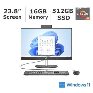 Introducing the HP All-in-One Desktop PC, featuring a stunning 23.8-inch FHD Touchscreen for vibrant visuals and an immersive user experience. This powerful desktop is packed with an AMD Ryzen 5 7520U processor, ensuring lightning-fast performance with a maximum boost clock of 4.3 GHz. With 16 GB of LPDDR5 RAM and a blazing 512 GB PCIe NVMe M.2 SSD, you can store your favorite applications and files while...
