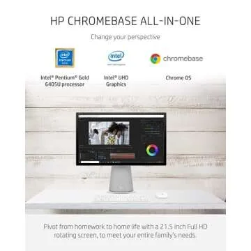 HP Chromebase 21.5" All-in-One Desktop, Intel Pentium Gold 6405U Processor, 4 GB RAM, 64 GB Storage, Rotating Full HD IPS Touchscreen, Chrome OS, Bluetooth Keyboard and Mouse Combo (22-aa0012, 2021)