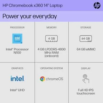 Show more If you’re looking to elevate your computing experience, look no further than the HP Chromebook x360 14 Laptop. This innovative device seamlessly blends power and elegance, introducing you to an array of features that cater to both productivity and entertainment. Its stunning HD touch display offers vibrant visuals and an intuitive touch experience, allowing users to easily navigate applications with simple gestures. The powerhouse behind this incredible laptop is the Intel N100 processor, designed to deliver speedy performance and stunning graphics, making it perfect for streaming 4K content and handling multiple tasks with ease.