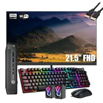 Show more The HP EliteDesk 800 G2 mini PC is designed for those who demand excellence. This compact yet powerful machine features a robust Intel Quad Core i5-6500 processor with a base frequency of 3.2 GHz, making it ideal for multitasking and running demanding applications. This all-in-one solution is bundled with a stunning 21.5-inch Full HD monitor, enhancing your computing experience beautifully. The package also includes essential peripherals such as RGB speakers, a keyboard, and a mouse, ensuring you have everything you need to hit the ground running.