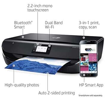 HP Envy 5055 Wireless Color Photo All-in-One Inkjet Printer - Print Scan Copy - 2.2" Touchscreen LCD, 10 ppm, 1200 x 1200 dpi, 8.5 x 14, Auto 2-Sided Printing, Borderless Printing, USB