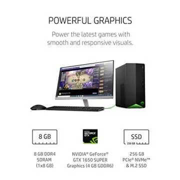 HP Pavilion Gaming Desktop, NVIDIA GeForce GTX 1650 SUPER, Intel Core i3-10100, 8 GB DDR4 RAM, 256 GB PCIe NVMe SSD, Windows 11, USB Mouse and Keyboard, Compact Tower Design (TG01-1022, 2020)