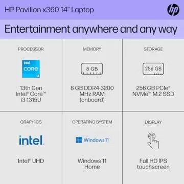 HP Pavilion x360 14 inch Laptop, FHD Touchscreen, 13th Generation Intel Core i3-1315U, 8 GB RAM, 256 GB SSD, Intel UHD Graphics, Windows 11 Home, 14-ek1099nr (2024)