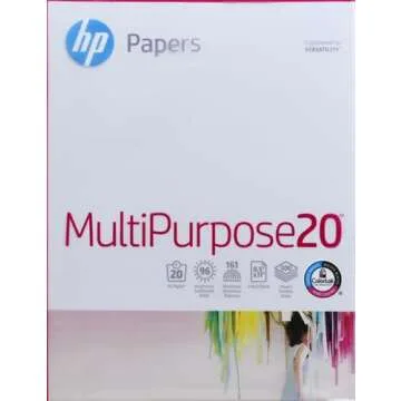 Show moreDiscover the ideal choice for all your printing and copying needs with HP Printer Paper. Made in the USA, this MultiPurpose 20 lb printer paper is sourced from renewable forest resources, ensuring environmentally sustainable production with 0% deforestation in North America. Ideal for both black and white printing and vibrant color documents, this paper delivers premium performance with every use. The standard letter-size (8.5 x 11 inches) ream contains 500 sheets of 96 bright paper that enhances your documents' appearance and clarity, making it a staple in both home and office environments.
