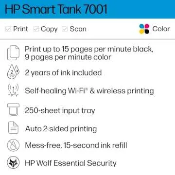 HP Smart -Tank 7001 Wireless All-in-One Cartridge-free Ink -Tank Printer, up to 2 years of ink included, mobile print, scan, copy (28B49A)