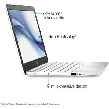 Show more Introducing the HP Stream 11.6-inch HD Laptop – the perfect blend of performance and portability, designed specifically for those who prioritize functionality and ease of use. This laptop is engineered with the modern student in mind, offering seamless access to online classes, streaming services like Netflix and Hulu, and everyday applications. Weighing in at a mere few pounds, its lightweight design allows for effortless transport, making it an ideal companion for those frequently on the move, whether you're heading to a coffee shop, library, or classroom.