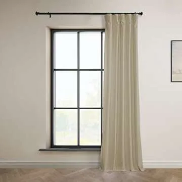 HPD Half Price Drapes Heritage Plush Velvet Curtains 96 Inches Long Room Darkening Curtains for Bedroom & Living Room 50W x 96L, (1 Panel), Light Beige