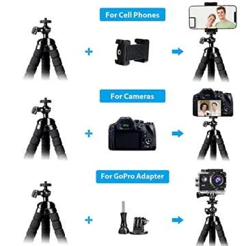 HPUSN Phone Tripod Flexible Stand: Universal Tripod with Portable Mini Octopus Cell Phones Tripod-for Travel Selfie Family Gathering Compatible with iPhone/Android/Camera/GoPro