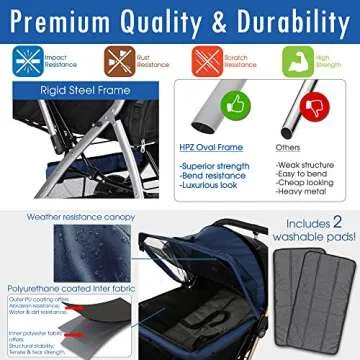 HPZ Pet Rover Premium Heavy Duty Dog/Cat/Pet Stroller Travel Carriage With Convertible Compartment/Zipperless Entry/Reversible Handle/Pump-Free Rubber Tires for Small, Medium, Large Pets-Midnight Blue