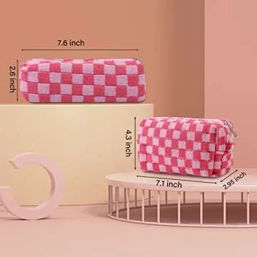 HQLESHUI 2Pcs Makeup Bag Cosmetic Bag with Zipper, 1Pcs Large Capacity Makeup Bags and 1Pcs Pencil Case Makeup Brushes Storage Bag Travel Toiletry Bag Organizer for Women (Rose red)