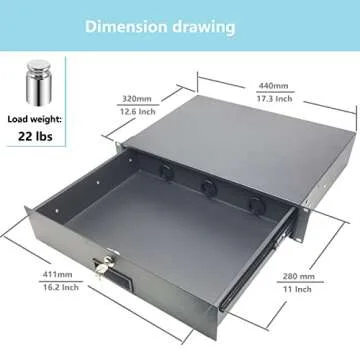 Introducing the HQYing 2U Rack Mount Drawer, expertly designed to fit into any standard 19-inch network cabinet or server rack. With dimensions of 19 inches wide, 2U high, and 12.6 inches deep, this durable drawer offers a max loading capacity of 22 pounds, making it ideal for securely storing your essential AV, DJ equipment, or server accessories. Its sleek design is complemented by a lock and key system, ensuring that your valuable items are safe and accessible.