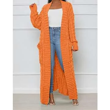 HRESSLBD Cardigan for Women Dressy, Warm Cardigan Sweaters for Women, Casual Cardigans for Women, Stylish Cable Knit Dual Pocket Cardigan Long, Cardigan Y2k, Cardigan Sweaters (Orange, L)