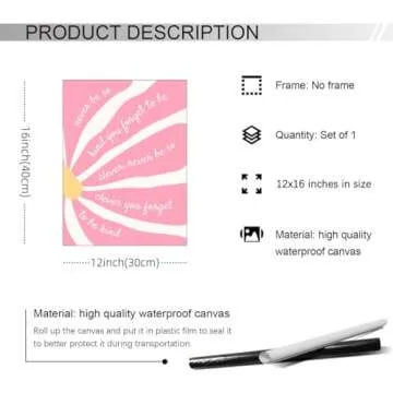 - Durable & High Quality: Crafted using high-quality, environmentally-friendly inks, these canvas posters are designed to last. They resist fading, boast vivid colors, are waterproof, UV resistant, and odor-free, ensuring your walls stay vibrant for years to come.