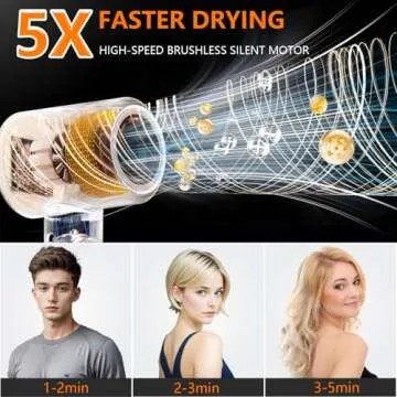 Show moreThe HRYCF Hair Dryer redefines your hair drying experience with advanced technology and thoughtful design. Equipped with a powerful 160,000 RPM high-speed brushless motor, this hair dryer delivers an incredible airflow of 35m/s for fast, efficient drying. By utilizing a built-in Negative Ionic generator, it releases up to 2 billion negative ions, tackling frizz and enhancing shine. It's the perfect solution for anyone looking to maintain post-blow dry gloss while minimizing damage caused by traditional heat drying methods. Imagine achieving salon-quality hair, all from the comfort of home, in just 1-5 minutes per use.