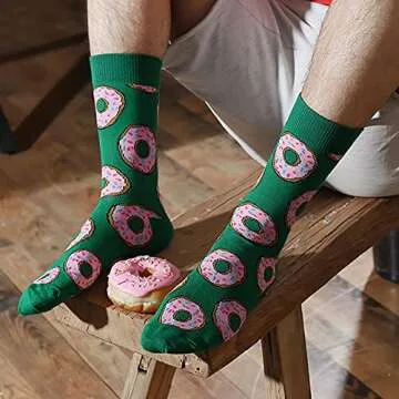 HSELL Funny Mens Colorful Dress Socks Fun Novelty Patterned Crazy Design Socks (12 Pairs - Donuts)