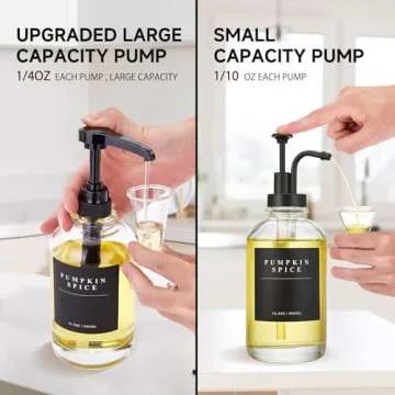 HSIOHE Coffee Syrup Dispenser for Coffee Bar, Coffee Syrup Pump Dispenser, Glass Syrup Bottle with 1/4oz Large Capacity Pump, 4 Pack 16.9 oz 500 ml Syrup Dispensers 28 Labels, Black