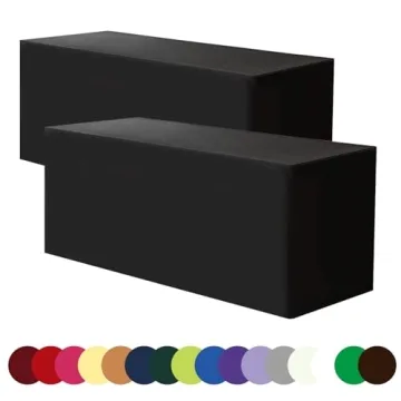 Show more Transform your table settings with the Hstbgdlk Black 6FT Tablecloth, designed specifically to elevate both casual and formal occasions with its impeccable style and functionality. This fitted table cover, tailored for 6-foot rectangle tables, is crafted from premium polyester fabric that is not only water-resistant but also durable, ensuring it can endure everyday wear and tear while maintaining its rich, smooth texture. Ideal for parties, weddings, trade shows, or any special gathering, this tablecloth brings sophistication and elegance to your events.