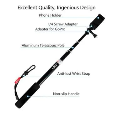 HSU Extendable Selfie Stick for Action Camera, Waterproof Hand Grip for GoPro Hero 13/12/11/10/9/8/7, Handheld Monopod 11.8" to 36.2" for Cell Phones AKASO Insta360 X4 X3 and Other Action Cameras