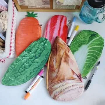 HSYHERE Creative Cute Novelty Funny Face Simulation Food Fruit Chicken Leg Banana Character Soft Stuffed Surface Clothes Zipper Pencil Box Pencil Case Pencil Holder Pouch Pen Bag - cabbage