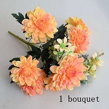 Htmeing 10 Heads Artificial Silk Gerbera Daisy Flowers Marigold Bouquet for Office Home Floral Decor, Pack of 2 (Orange red)