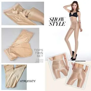 HTRUIYA Women's Sheer reflective Shiny Silk Pantyhose 70D flash oil bright shaping Stockings tights (Nude)