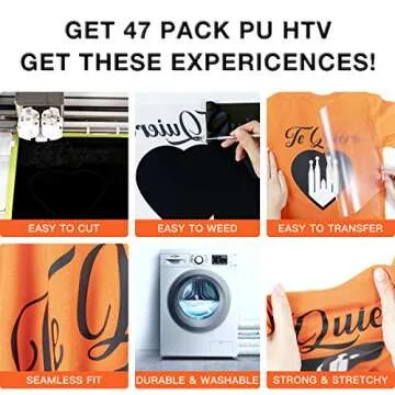 Show more Introducing the **HTV Heat Transfer Vinyl Bundle**, your ultimate solution for crafting vibrant, personalized fabric designs! With an impressive **47 pack** of **12" x 10"** iron-on vinyl sheets, this bundle offers an abundance of creative possibilities for everyone from DIY enthusiasts to professional crafters. Featuring **33 assorted matte colors** and essential accessories, including a pair of weeding tweezers and a Teflon sheet, this set is designed for easy handling, a seamless application, and guaranteed satisfaction. The PU material is not only thin and smooth, making it simple to cut and weed, but it also adheres to various fabrics exceptionally well, ensuring that your creations look stunning and last long.