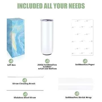 - All-Inclusive Set: Each tumbler comes complete with a gift box, lid, straw, brush, and rubber bottom, plus sublimation shrink wrap and paper – all you need to make a unique tumbler is included!
