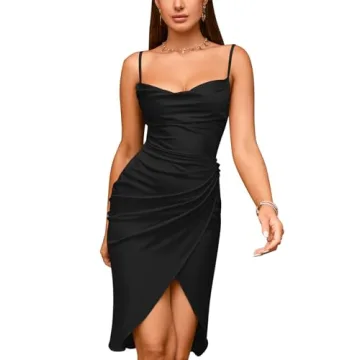Step into a realm of elegance and allure with the HTZMO Women's Satin Slip Dress, a mesmerizing bodycon dress ideal for any occasion. Crafted from luxurious satin, this dress envelops you in a softness that feels divine against the skin while boasting a lightweight and breathable design. The chic cowl neck elegantly frames your neckline, inviting admiration, and making this dress an indispensable piece in your wardrobe. Available in six sizes, from XS to XXL, it offers a perfect fit for every...
