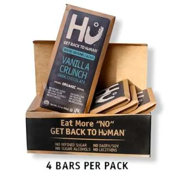 Hu Chocolate Bars | 4 Pack Vanilla Crunch Chocolate | Natural Organic Vegan, Gluten Free, Paleo, Non GMO, Fair Trade Dark Chocolate | 2.1oz Each