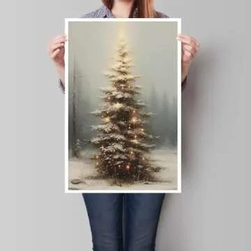 Huabsad Vintage Christmas Tree Wall Art Retro Lighted Winter Pine Botanical Aesthetic Picture Prints Rustic Scene Winter Room Wall Decor Canvas Posters Farmhouse Holiday Decor 12x16in Unframed