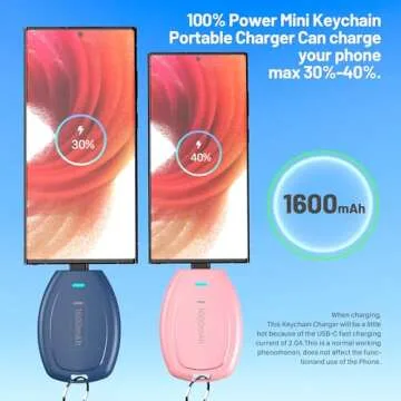 Show moreIntroducing the HUAENG 2-Pack USB C Keychain Portable Charger – the ultimate solution for anyone who finds themselves on-the-go and in need of a dependable power source! This ultra-compact mini power bank boasts a 1600mAh capacity, ensuring that your devices stay charged when you need them most. Perfectly sized like a car key, measure just 2.9''x0.59''x1.8'' and weighing only 1.4oz, this power bank is designed for your convenience. Easily attach it to your keys or slip it into your purse, guaranteeing you’ll never be far from power. Equipped with a built-in USB-C connector, it saves you from carrying messy cables, making charging as simple as plugging directly into your device.