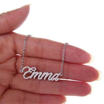 HUAN XUN Stainless Steel Name Necklace for Her, Emma