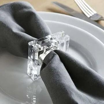 Huang Acrylic Set of 4 Square Beveled Napkin Rings (clear) for table settings, decor, entertainment, parties, and weddings