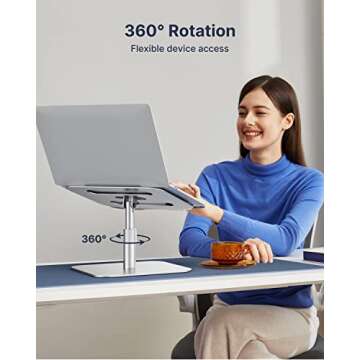 HUANUO Adjustable Ergonomic Laptop Stand with 360° Rotation, Aluminum Laptop Riser for Desk, Notebook Computer Stand Holder Compatible with 10-17 Inch Laptops, Silver, HNLS05S