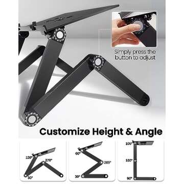 HUANUO Adjustable Lap Desk for up to 15.6" Laptops, Portable Ergonomic Table Stand with 2 CPU Fans, Detachable Mouse Pad, TV Bed Tray, Standing Desk