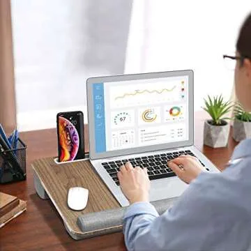 HUANUO Lap Desk - Fits up to 17 inches Laptop, Built in Wrist Pad for Notebook, Tablet, Laptop Stand with Tablet, Pen & Phone Holder