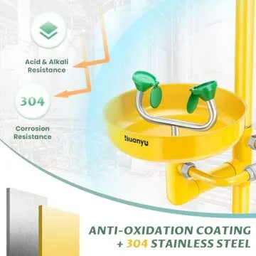 Huanyu Emergency Shower and Eyewash Station Safety Shower Eye Wash Station 304 Stainless Steel Commercial Eye Wash Kit Widened Deepened Basin with Emergency Sign Hospital Factory (1107Y)