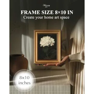HUARCEY Gold Framed Vintage Wall Art for Living Room, Flowers Painting Canvas Prints Shelf Decor for Kitchen, Aesthetic Bedroom Wall Art, Christmas Gifts for Friends or Family (White Hydrangea 8"x10")