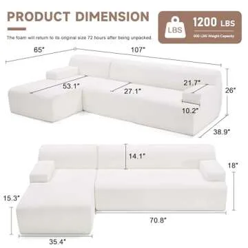 Show moreIntroducing the Huatean Home 107" Modular Sectional Sofa, your ultimate solution for comfort and style in any living space. Designed with a contemporary flair, this stunning sectional couch offers a unique blend of aesthetics and functionality. The high-density foam cushioning ensures supreme comfort while providing the necessary support for long hours of relaxation. Its generous seat depth of 27" and an impressive overall length of 107" make it the perfect centerpiece for your living room, inviting family and friends to gather and unwind. Crafted from upgraded anti-wrinkle chenille fabric, this cloud couch not only promises durability but also showcases sophistication that elevates your home decor.