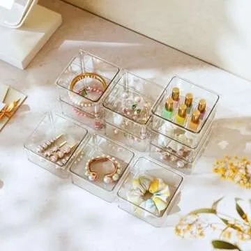 Hudgan 24 PCS Clear Plastic Drawer Organizer Set Stackable Square Vanity Organizers and storage for Makeup, Bathroom, Office Desk